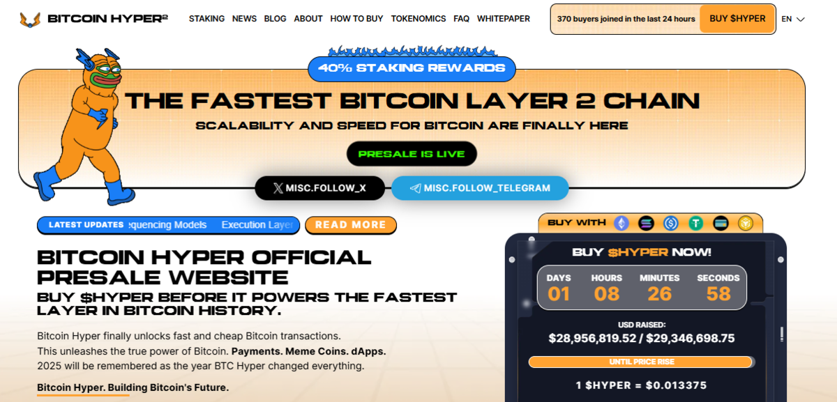 1. Bitcoin Hyper – meme žetonas, siekiantis pakelti Bitcoin galimybes